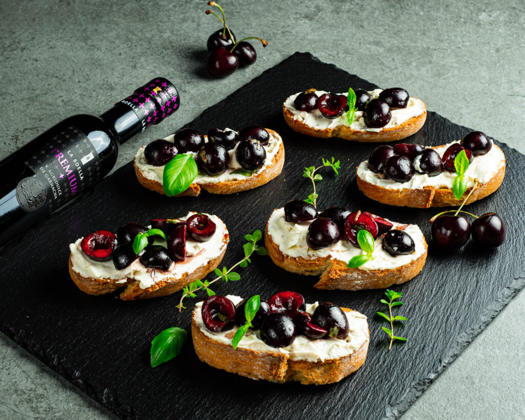 Ant viršaus dedame pjaustytas vyšnias ar trešnes kiek pabuvusias balzaminiame acte.