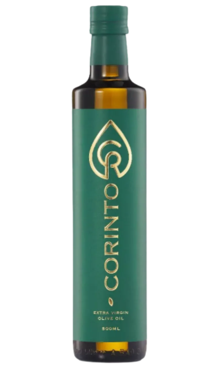 Išskirtinės kokybės „Corinto“ ypač tyras alyvuogių aliejus, pagamintas iš 100 % Manaki alyvuogių.