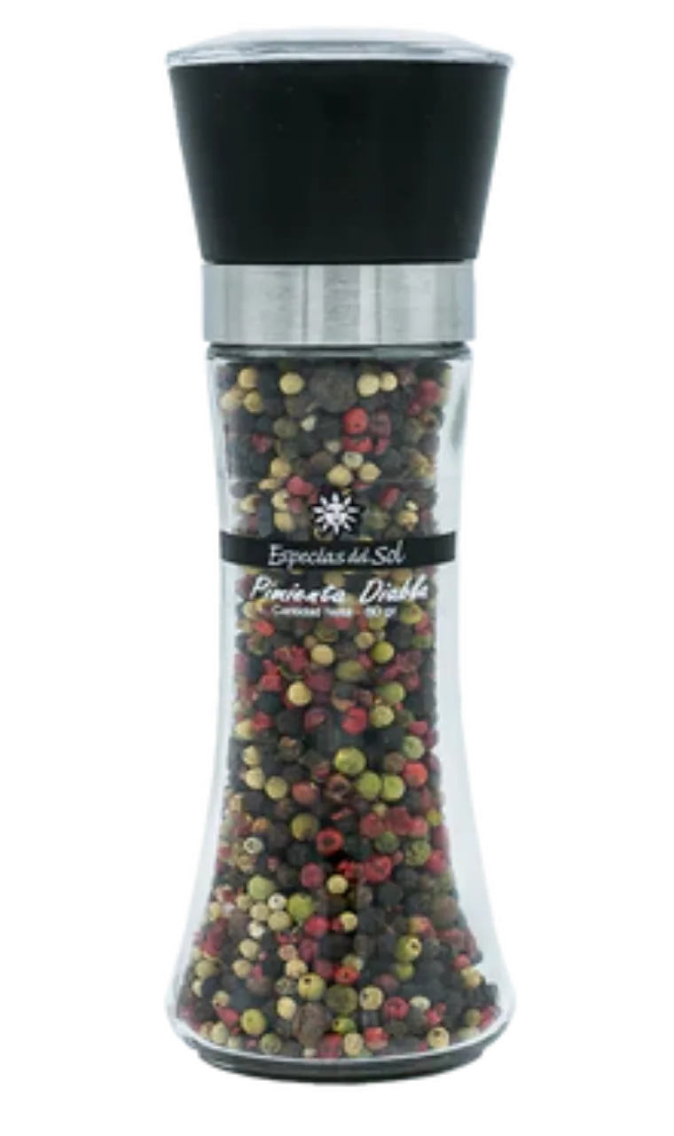 Sudėtis: juodieji pipirai, baltieji pipirai, Jamaikos pipirai, rožiniai pipirai, žalieji pipirai.
