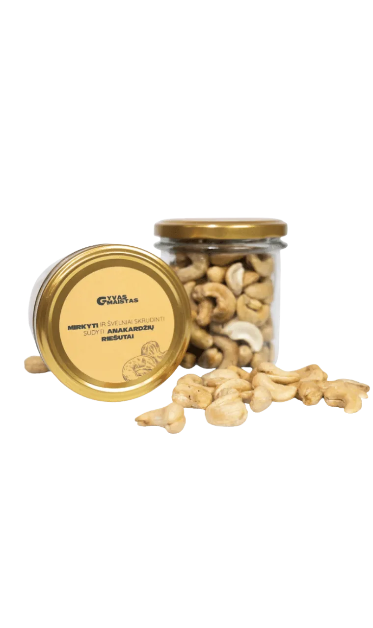 Mirkyti ir švelniai skrudinti sūdyti anakardžių riešutai.