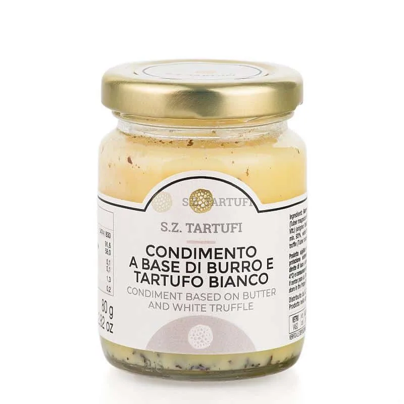 Sudedamosios dalys: koncentruotas sviestas min. 93%, baltieji trumai (Tuber magnatum Pico) (kilmė Italija) min. 3%, TRUMAI BIANCHETTO (Tuber borchii Vitt.) (kilmė Italija),kvapiosios medžiagos – trumų aromatas.