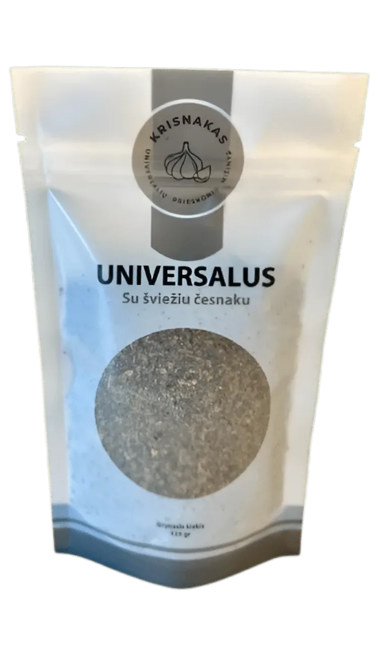 Krisnakas universalių prieskonių mišinys su šviežiu česnaku.